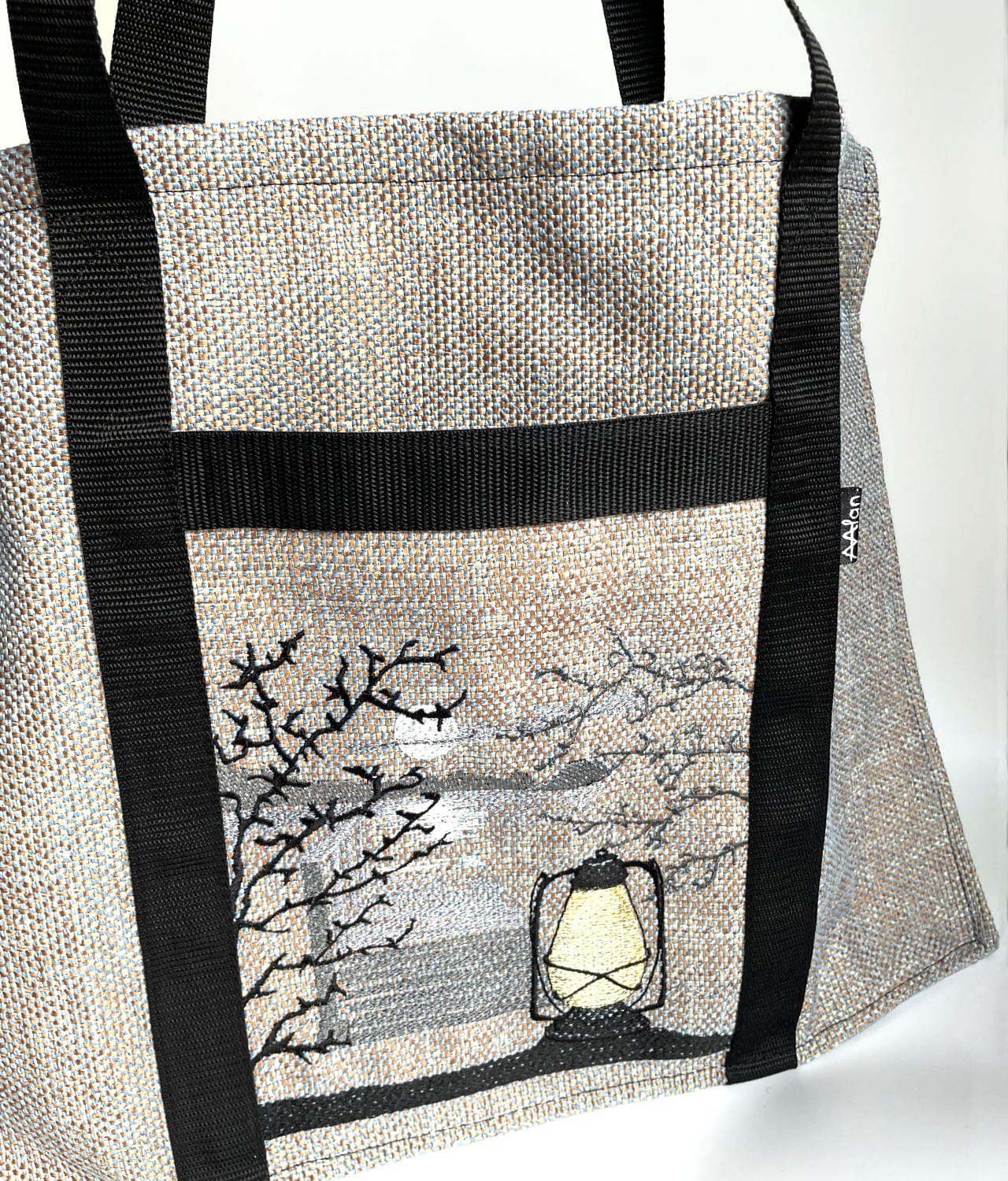 Kassi saunaan, rannalle, retkelle, kauppaan, tai mihin vain sitä haluat käyttää. Jyväskyläläisen verhoilun laadukkaat ylijäämäkangaspalat muuntuvat tilavaksi kassiksi kahdella taskulla, ja saavat pintaansa kauniin konekirjotun kuvion. Näitä kasseja valmistuu yksittäiskappaleina.